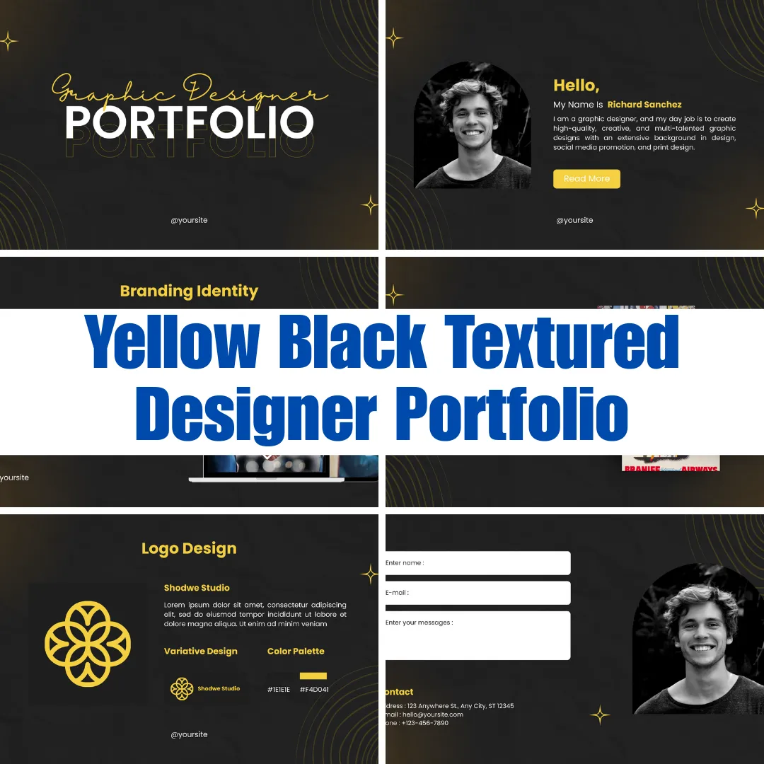Yellow Black Textured Designer Portfolio - Professional Editable Portfolio & Cover Letter Templates for Creatives and Agencies