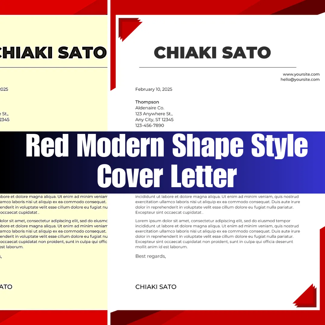 Red Modern Shape Style Cover Letter - Sleek Business Cover Letter Template for Professional Applications and Commercial Use