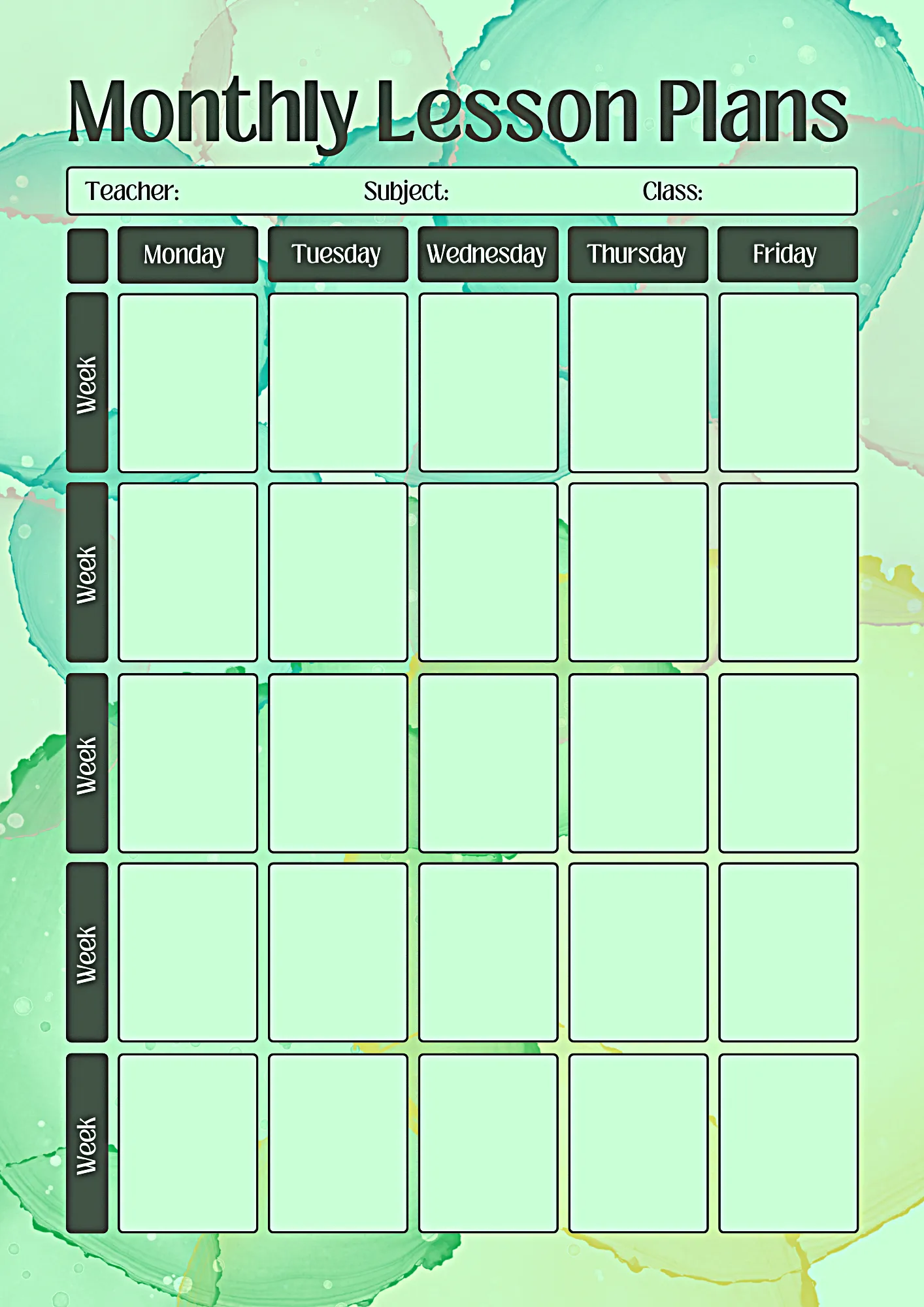 Watercolor Bubble Monthly Lesson Plan - Pastel - Creative Education Templates for Engaging, Organized, and Visual Learning Experiences