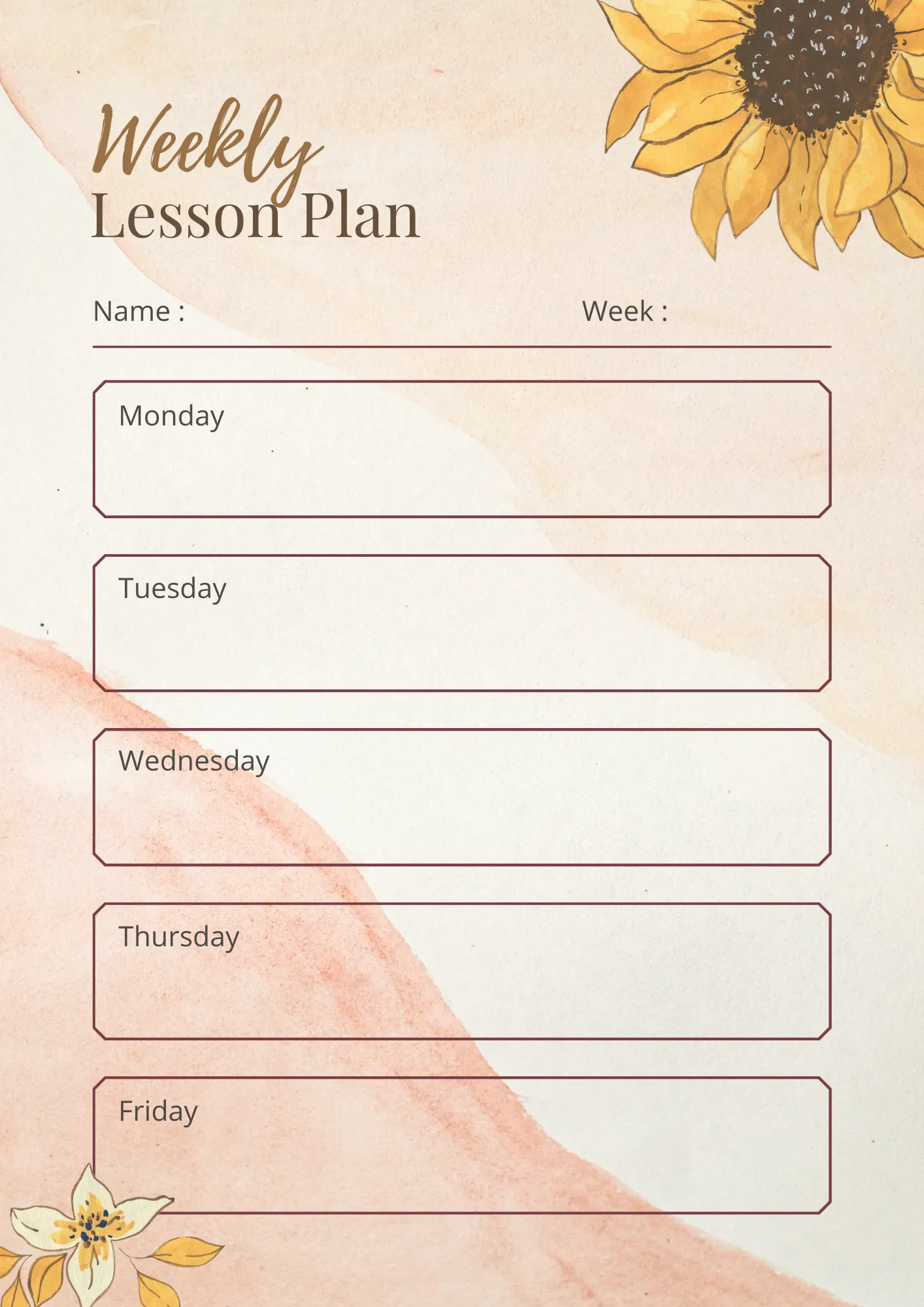 Watercolor Floral Weekly Lesson Plan Beige Theme - Elegant Educational Templates for Teachers and Trainers