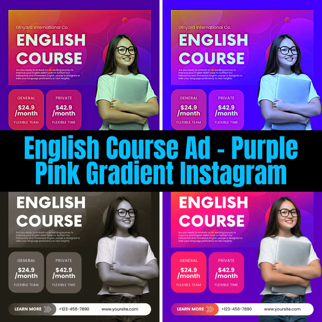 English Course Ad - Purple Pink Gradient Instagram - Vibrant School & Admissions Template for Engaging Social Campaigns