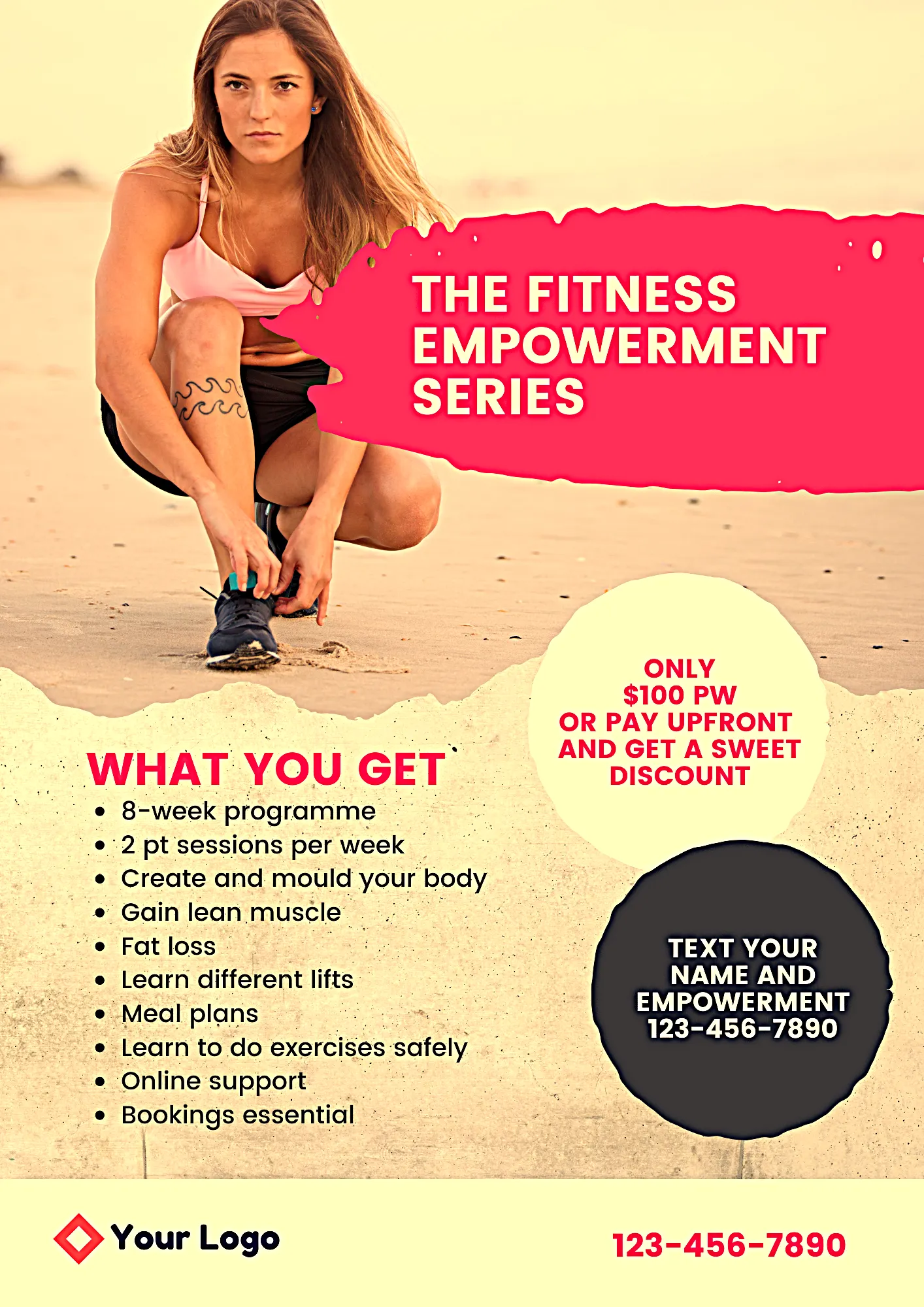 Women's Fitness Flyer - Pink Motivational Style - Dynamic Brochure Template for Fitness Brands and Health Campaigns