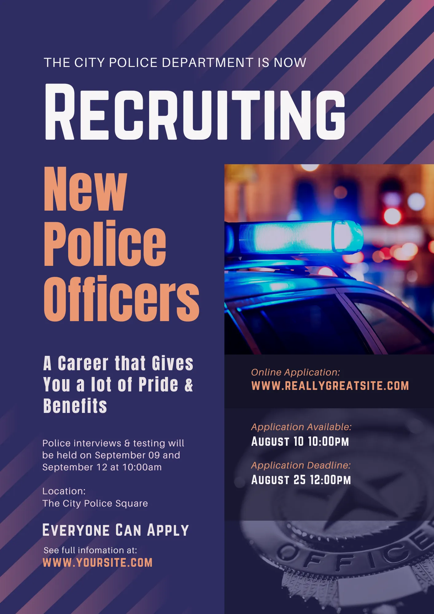 Recruitment Flyer - Police Hiring Campaign - Professional Recruitment Flyer Template for Police Departments and Hiring Drives
