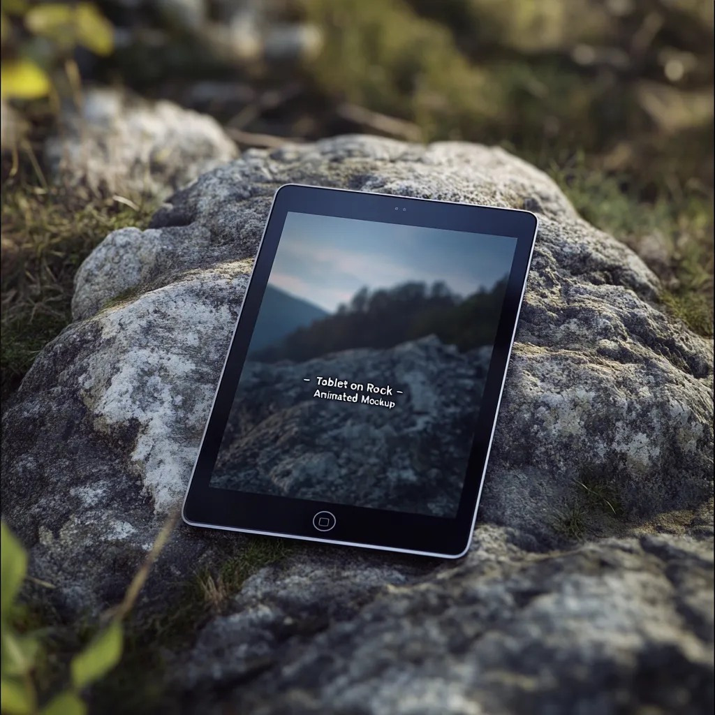 Tablet on Rock - Animated Mockup - Dynamic 3D Device Template for Digital Presentations and Creative Showcases