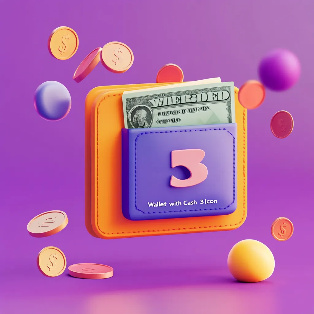 Wallet with Cash 3D Icon - Realistic 3D Template for Digital Design and Branding Projects