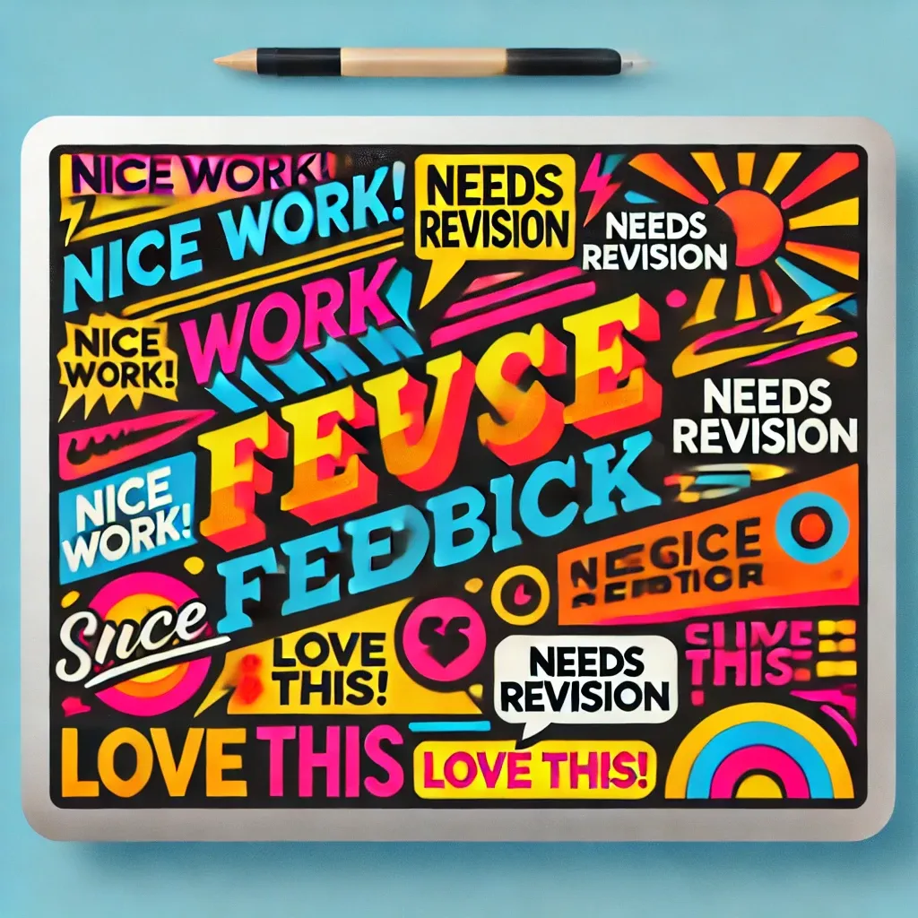 Typographic Feedback Bright Sticker - Vibrant Laptop Skin Design for Personal Expression and Tech Style