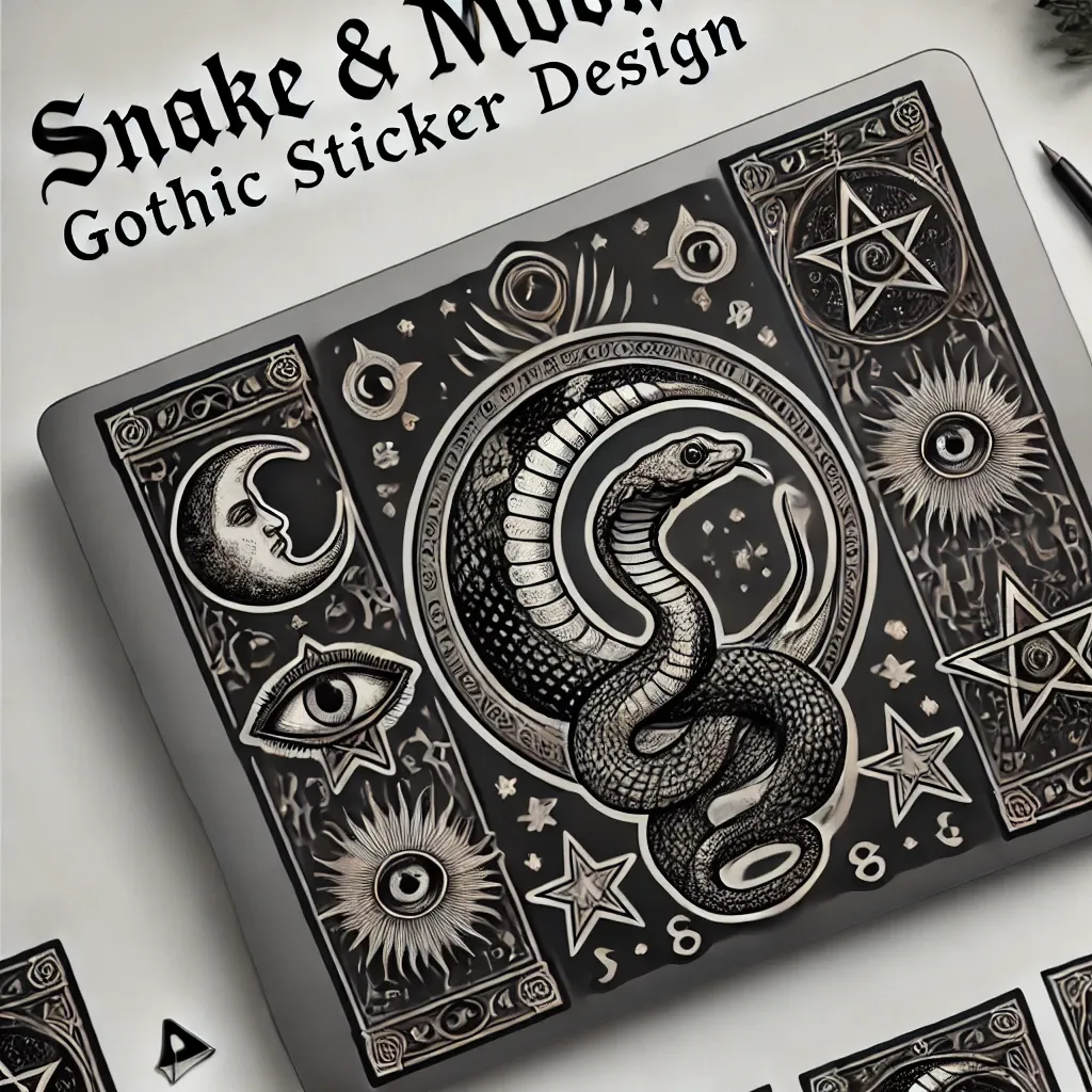 Snake & Moon - Gothic Sticker Design - Dark Mystical Laptop Skins for Personal and Creative Expression
