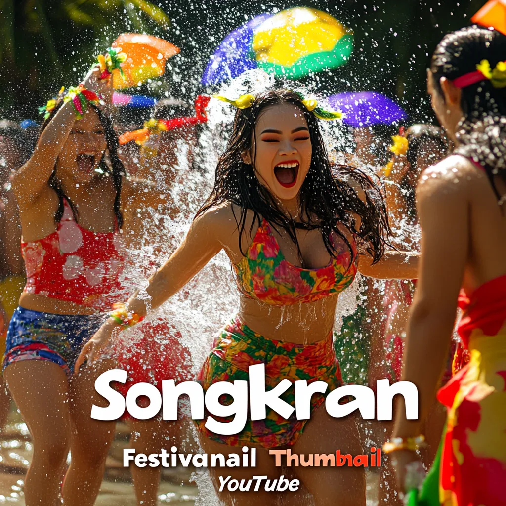 Songkran Festival Thumbnail YouTube - Vibrant Social Media Template for Engaging YouTube Content Creators